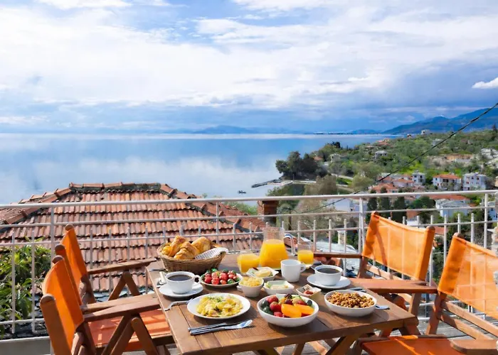 Vista Mare Villa Áfissos ligt binnen 3 km van het Boufa strand en nodigt gasten uit om te ontspannen op een terras.